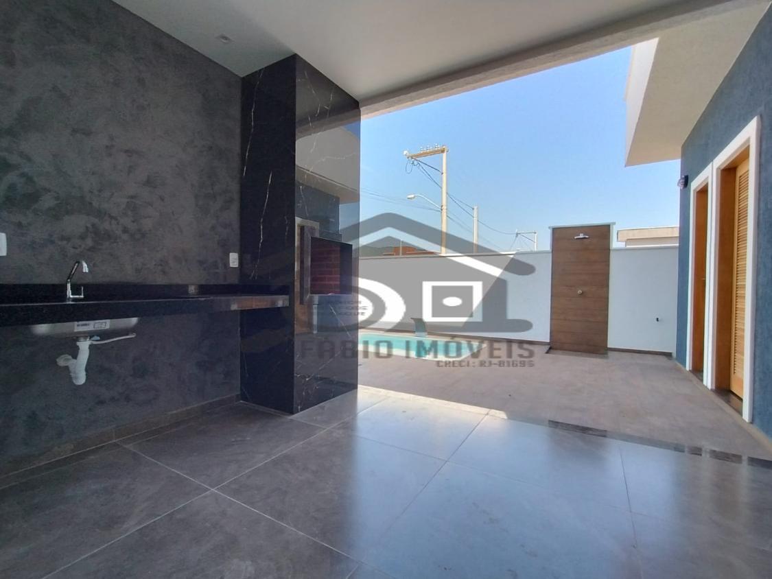 Ótima casa possuindo ampla sala, 03 quartos, sendo 01 suíte com closet, cozinha americana, banheiro social, lavanderia 01 vaga de garagem , paisagismo, piscina, chuveirão, área gourmet integrada possuindo churrasqueira, pia, bancada em granito, banheiro externo.