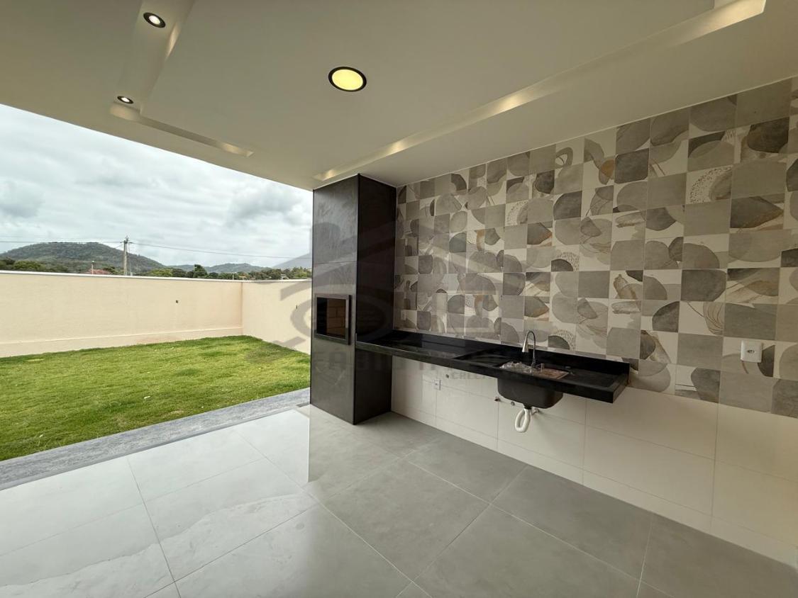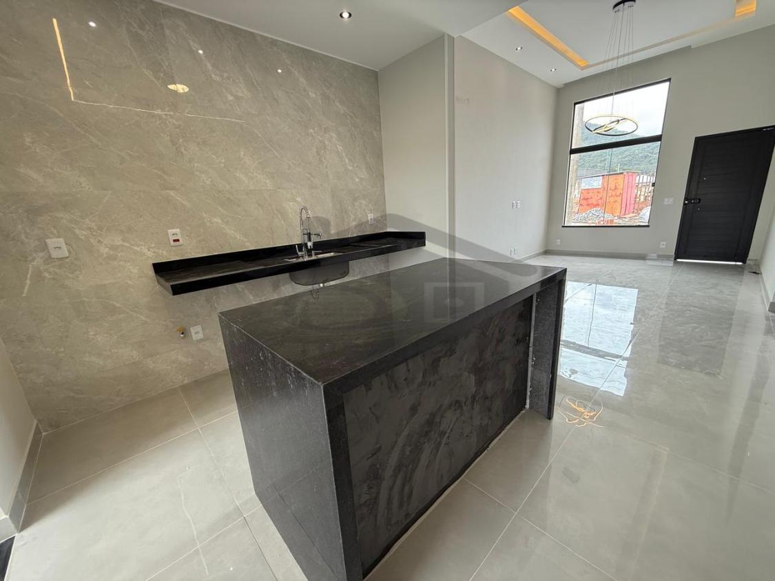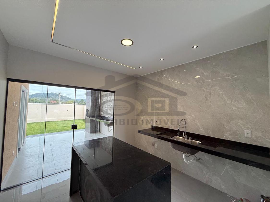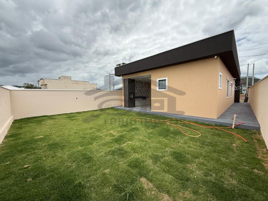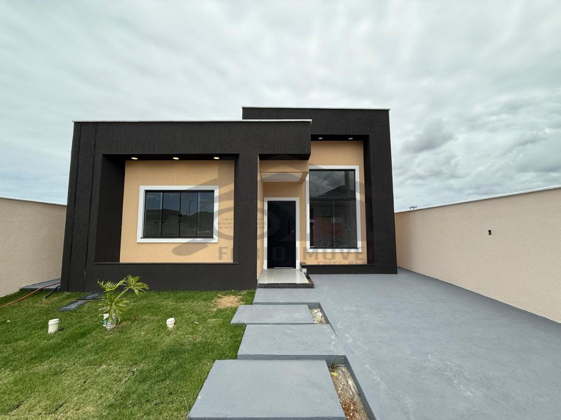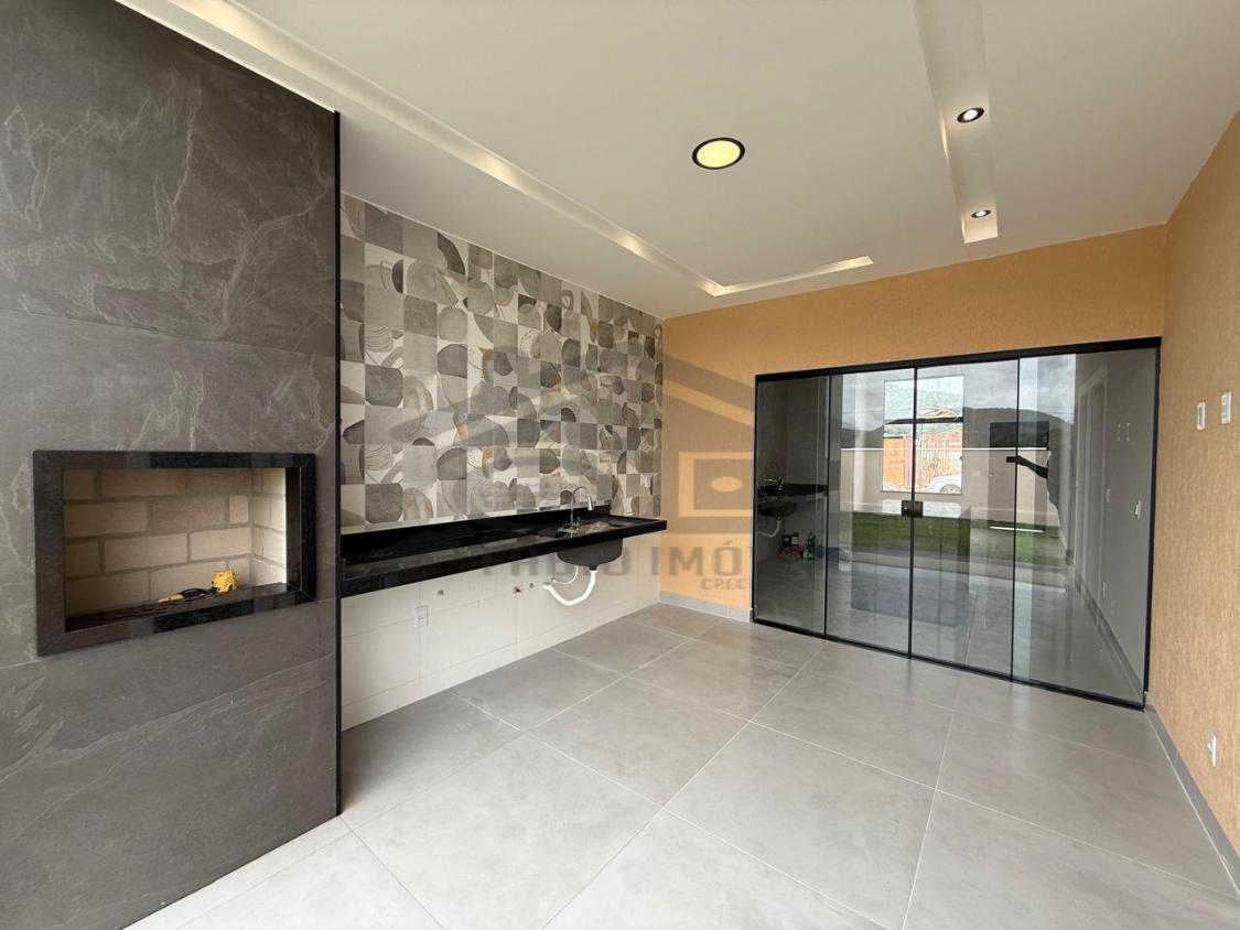 Belíssima casa à venda em um ótimo projeto arquitetônico com pé direito duplo possuindo 03 quartos, sendo 01 suíte, ampla sala, cozinha, banheiro social, lavanderia, 01 vaga de garagem, chuveirão, área gourmet integrada composta por churrasqueira, pia, bancada em granito.