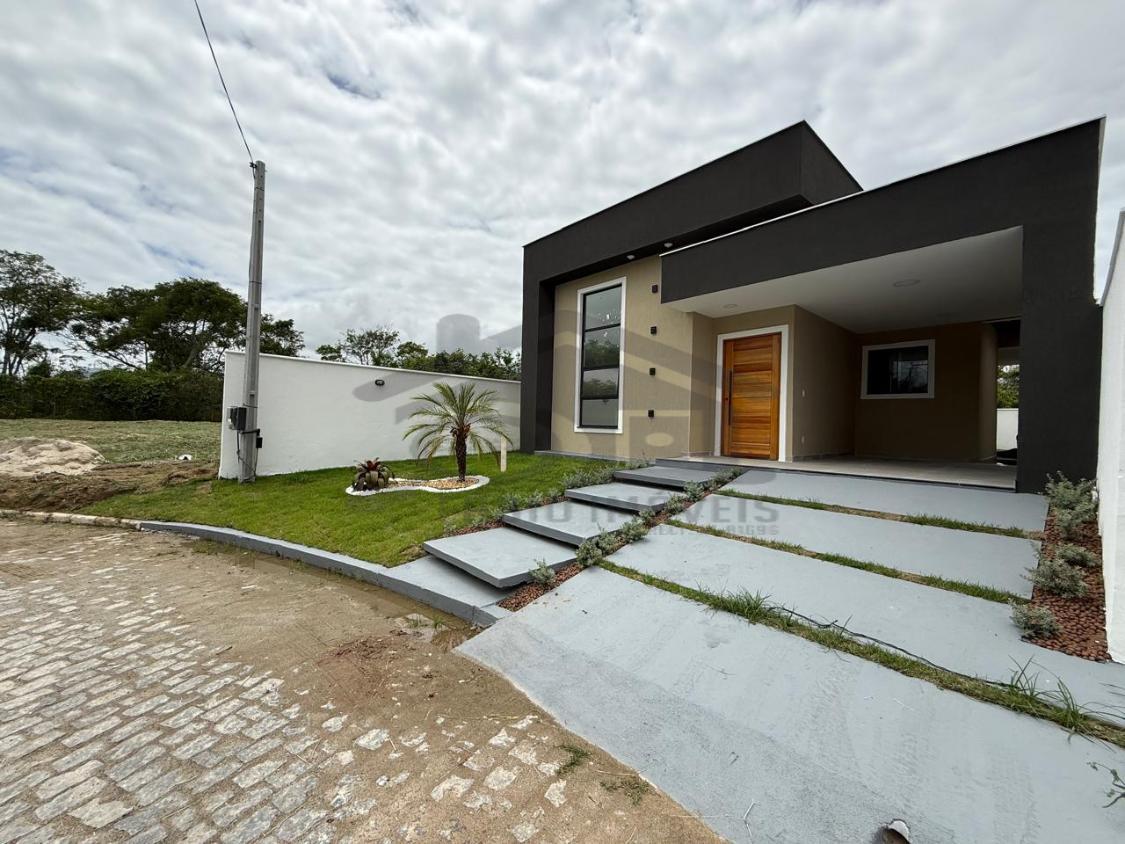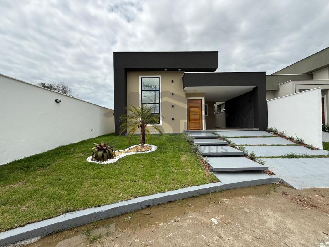 Belíssima casa à venda em um ótimo projeto arquitetônico com pé direito duplo possuindo 03 quartos, sendo 01 suíte, ampla sala, cozinha, banheiro social, lavanderia, 02 vaga de garagem, chuveirão, área gourmet integrada composta por churrasqueira, pia, bancada em granito.