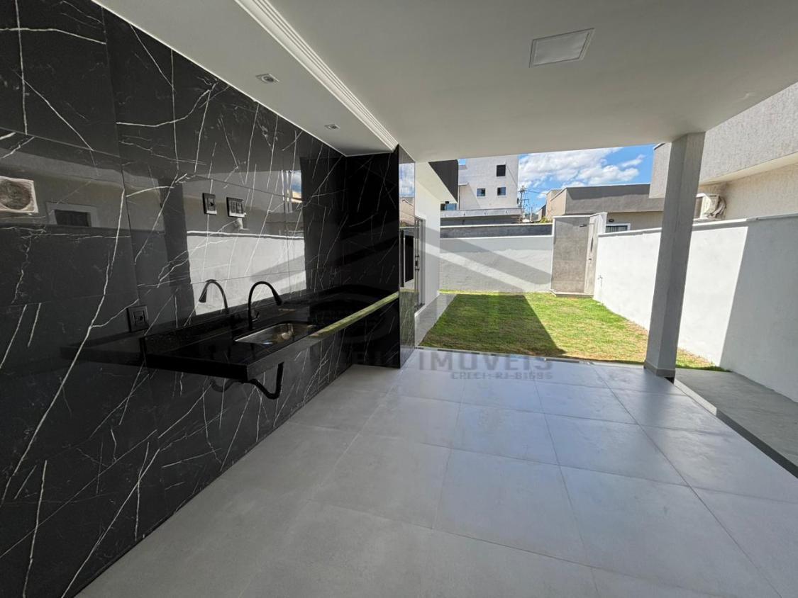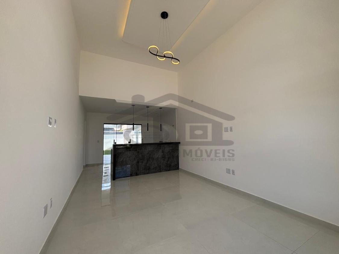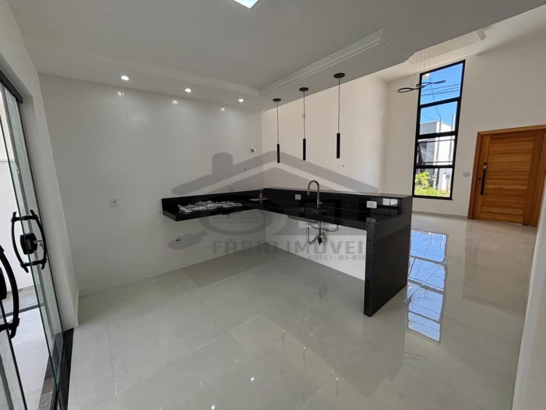 Belíssima casa à venda em um ótimo projeto arquitetônico com pé direito duplo possuindo 03 quartos, sendo 01 suíte, ampla sala, cozinha, banheiro social, lavanderia, 02 vaga de garagem, chuveirão, área gourmet integrada composta por churrasqueira, pia, bancada em granito.