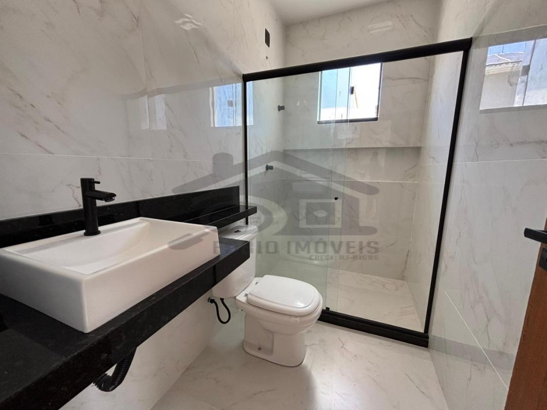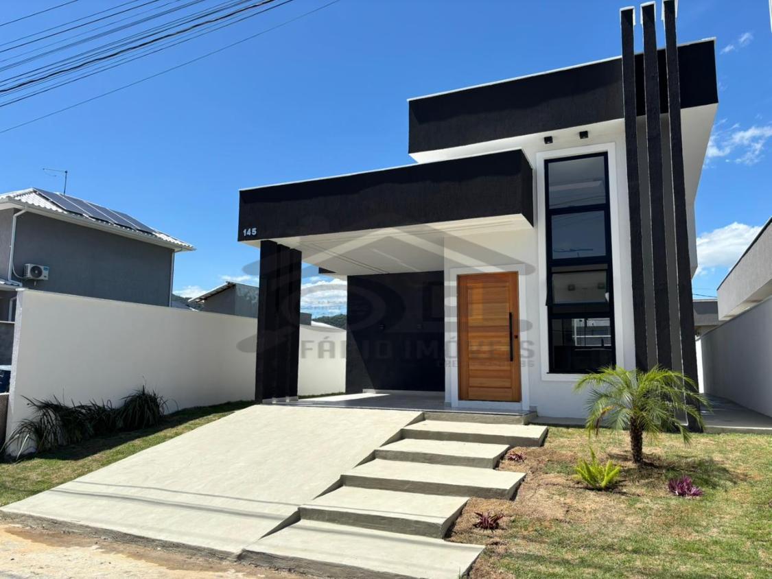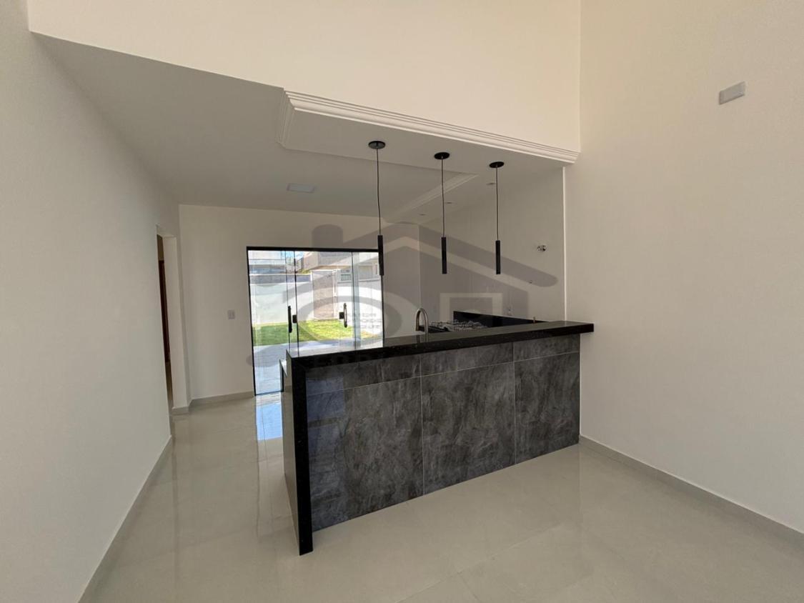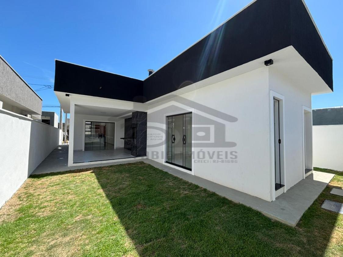 Belíssima casa à venda em um ótimo projeto arquitetônico com pé direito duplo possuindo 03 quartos, sendo 01 suíte, ampla sala, cozinha, banheiro social, lavanderia, 02 vaga de garagem, chuveirão, área gourmet integrada composta por churrasqueira, pia, bancada em granito.