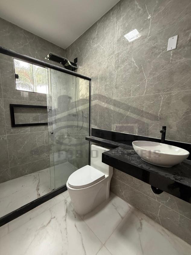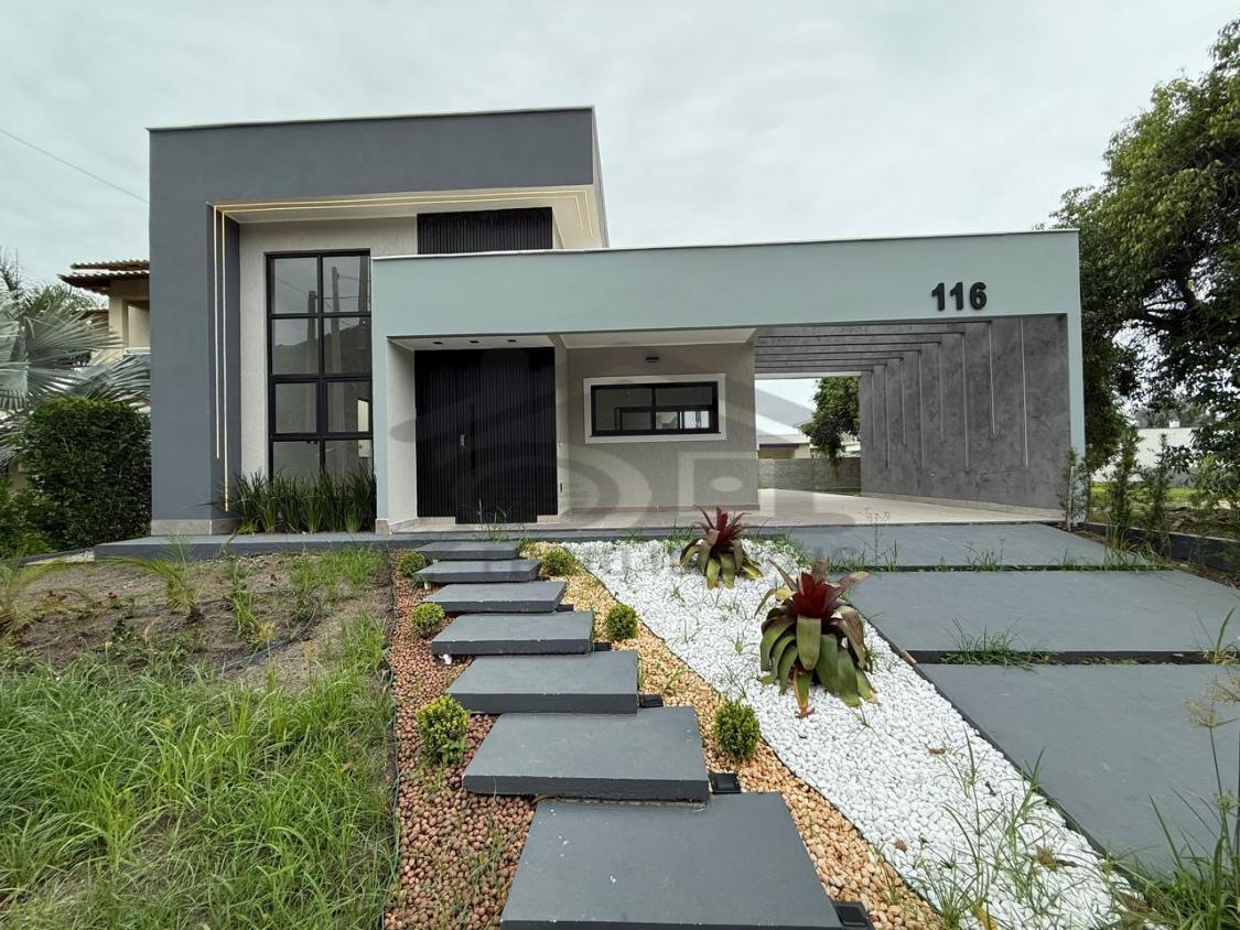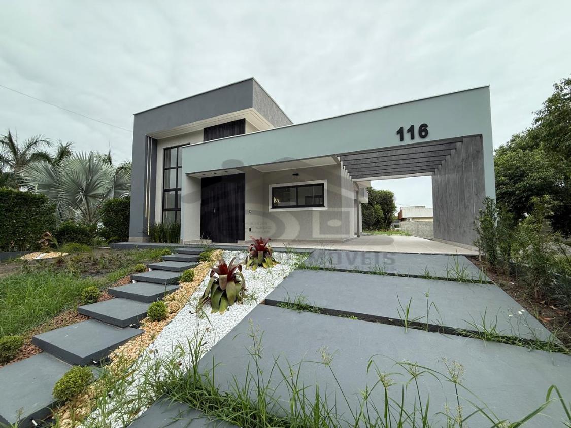 Belíssima casa à venda em um ótimo projeto arquitetônico com pé direito duplo possuindo 03 quartos, sendo 01 suíte, ampla sala, cozinha, banheiro social, lavanderia, 02 vaga de garagem, chuveirão, área gourmet integrada composta por churrasqueira, pia, bancada em granito.