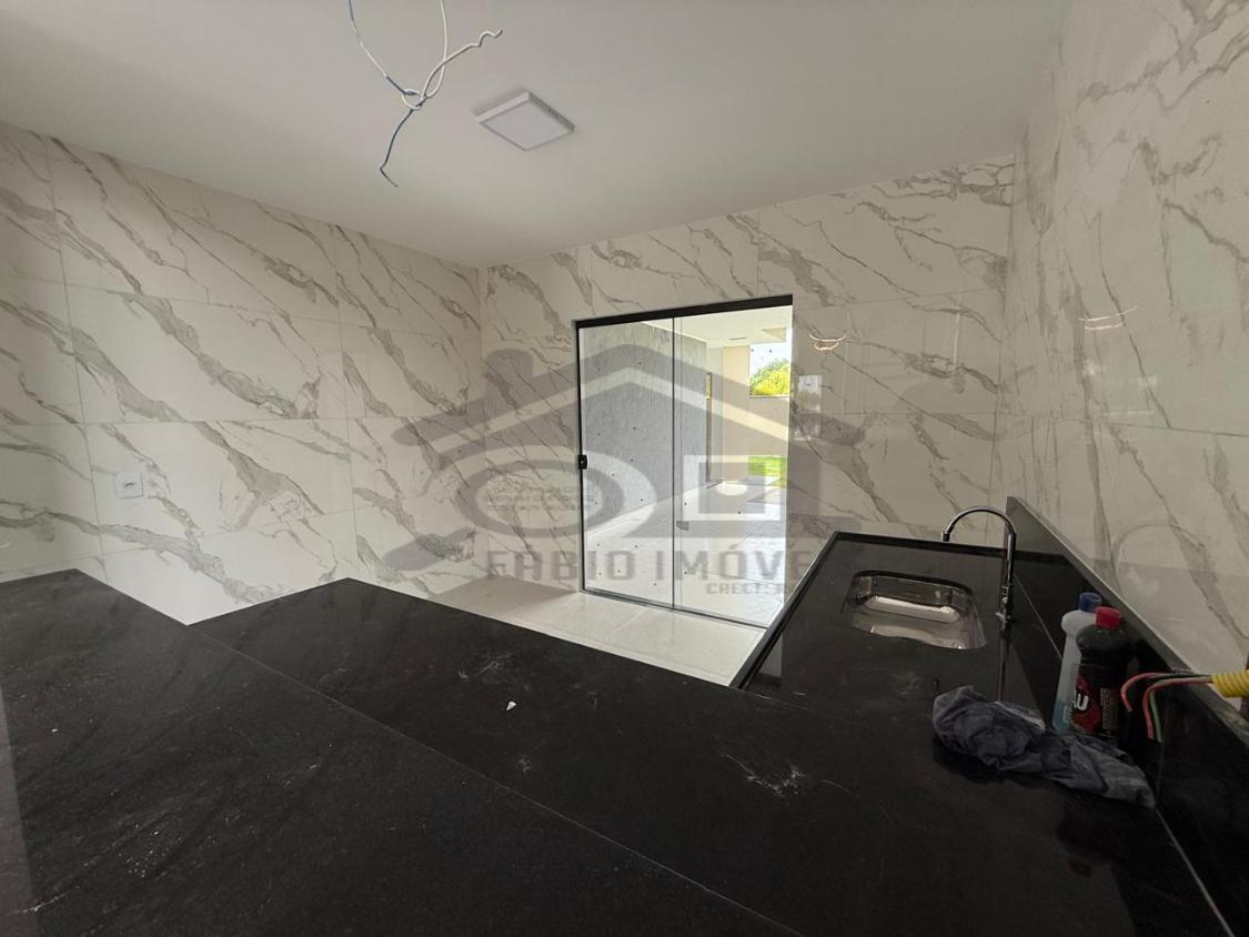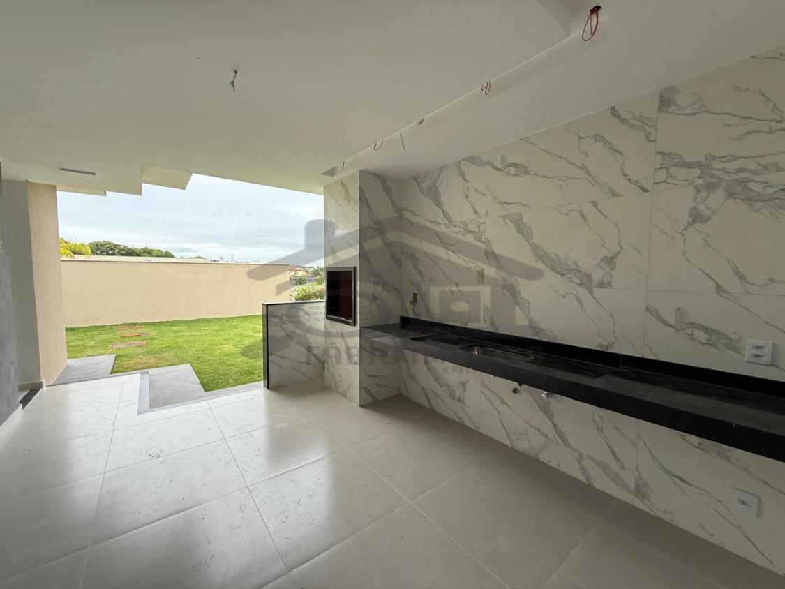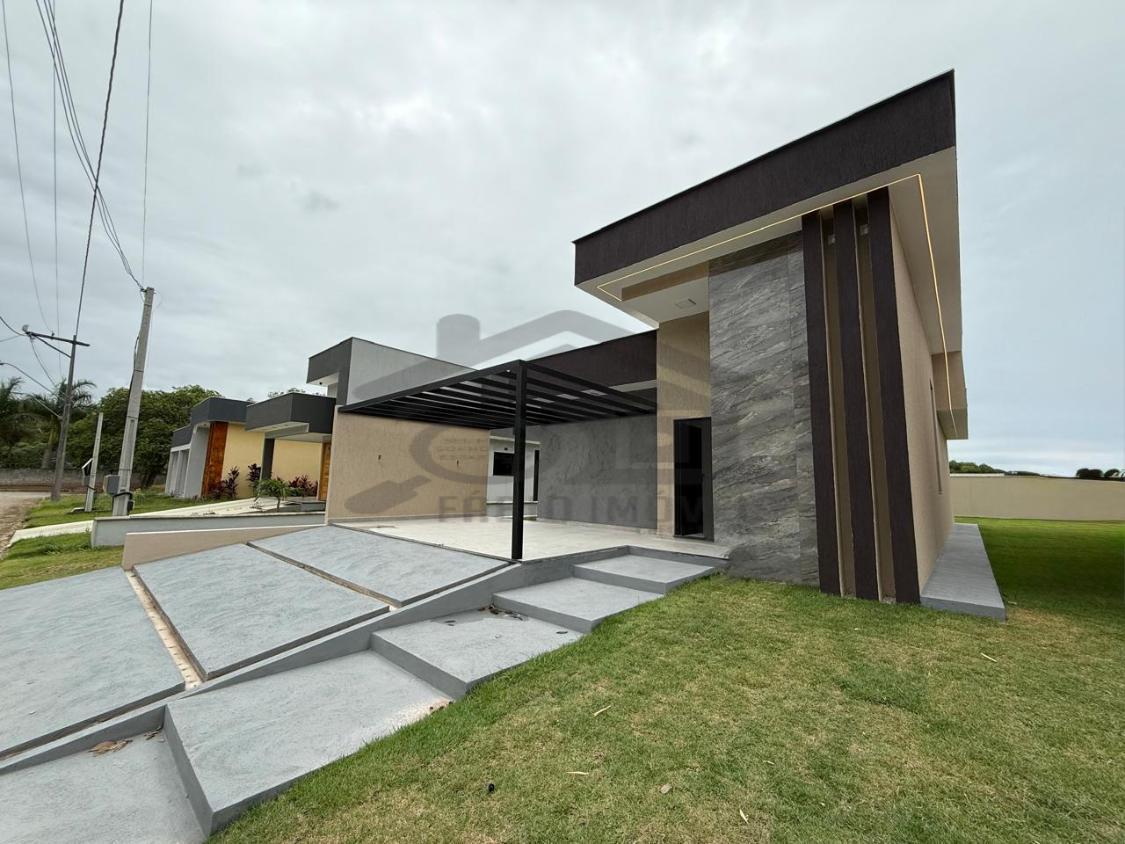 Excelente casa à venda em um ótimo projeto arquitetônico com pé direito duplo possuindo 03 quartos, sendo 01 suíte, ampla sala, cozinha, banheiro social, lavanderia, 02 vaga de garagem, chuveirão, área gourmet integrada composta por churrasqueira, pia, bancada em granito.