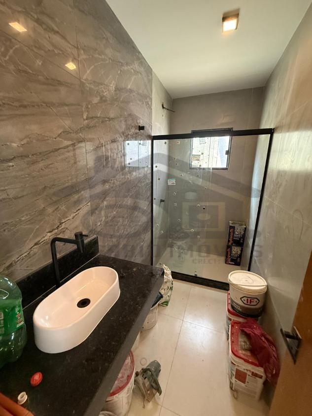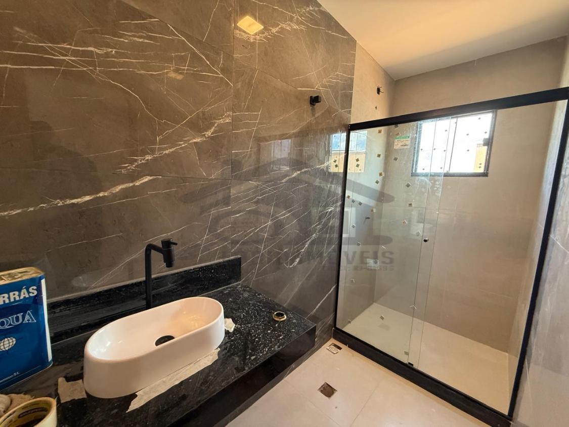 Excelente casa à venda em um ótimo projeto arquitetônico com pé direito duplo possuindo 03 quartos, sendo 01 suíte, ampla sala, cozinha, banheiro social, lavanderia, 02 vaga de garagem, chuveirão, área gourmet integrada composta por churrasqueira, pia, bancada em granito.